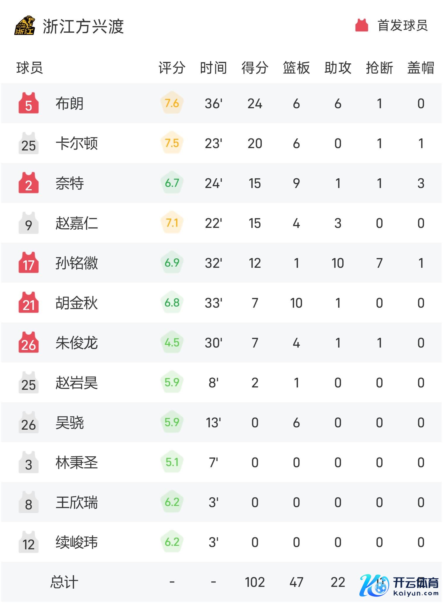 广厦首发:孙铭徽、布朗、朱俊龙、奈特、胡金秋