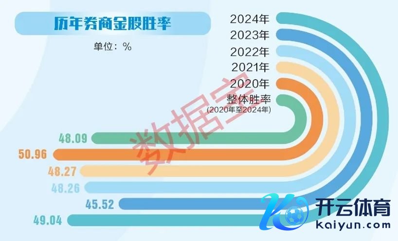 统计判辨,券商金股合座胜率在48%驾驭。具体到不同庚度,2020年、2024年胜率相对较高,其中2020年的胜率独特了50%,2024年胜率在49%驾驭;2021年、2022年、2023年胜率相对偏低,其中2023年仅有45%驾驭。