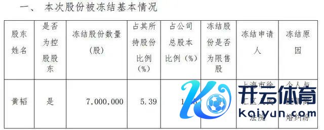 公告指出,控股推进、本色甩掉东说念主黄韬因离异后财产纠纷,被判决将其抓有的 1675 万股公司股份(占公司总股本的 4.18%)归前妻翁淑华通盘。