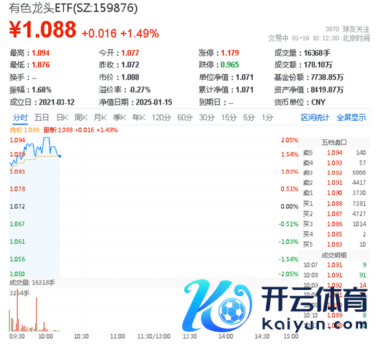 热点ETF方面,揽尽有色金属行业龙头的有色龙头ETF(159876)早盘走强,场内价钱盘中上探2.05%,现涨1.49%。