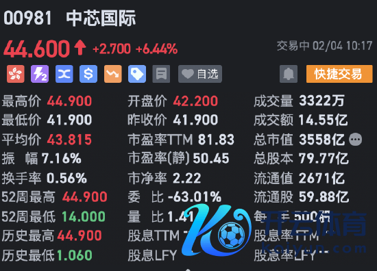 2月4日音讯,港股半导体主张股集体冲高,中芯海外涨超6%翻新高,现报44.6港元,成交额14.55亿港元,总市值3558亿港元。该股昨日收涨逾10%。
